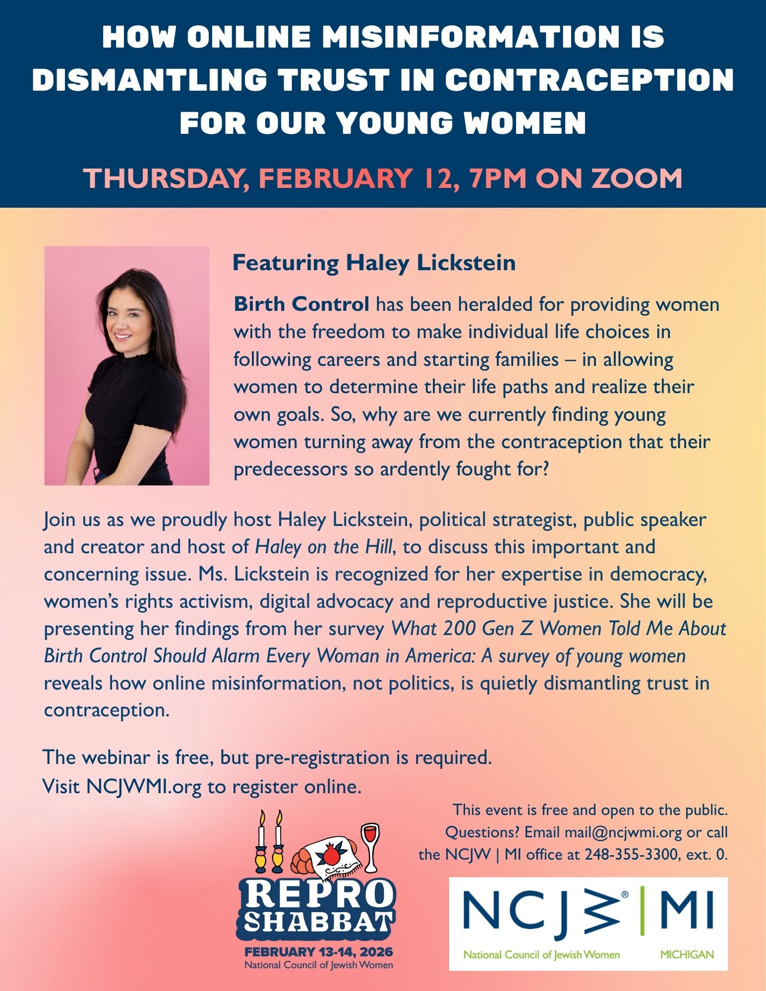 **Repro Shabbat****Friday, February 13, 2026 at 6:00pm** Reproductive Freedom is a Jewish Value.We invite you to honor it with Social Action and Sisterhood._Special guest speaker:_Shanay Watson-Whittaker, from Reproductive Freedom for […] |