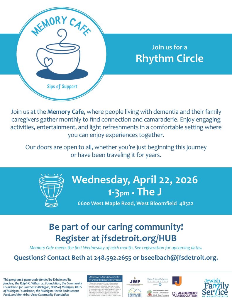 Questions? Contact Beth Seelbach, facilitator and JFS Family Caregiver Support Program Coordinator, at 248.763.6350 or bseelbach@jfsdetroit.org.