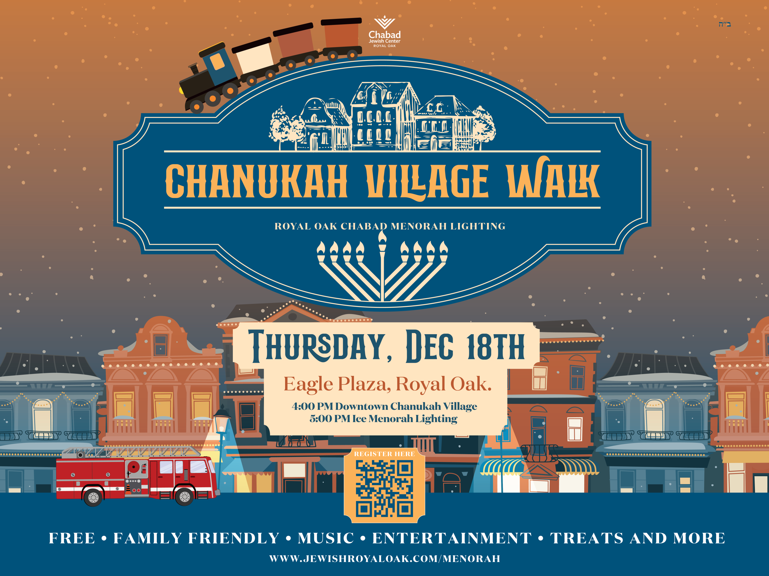 Join Royal Oak Chabad for a magical **Chanukah Village Walk and Ice Menorah