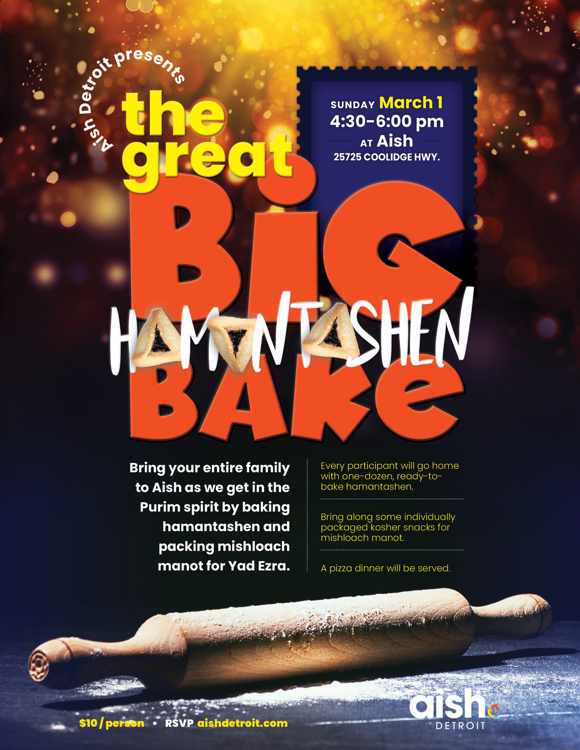 Every participant will go home with one-dozen, ready-to-bake hamantashen.