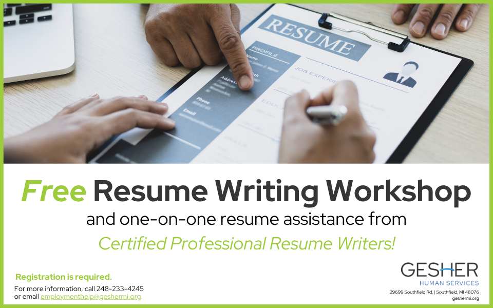 29699 Southfield Rd 29699 Southfield Rd, Southfield Southfield Road 29699, Southfield, Michigan, United StatesJoin Gesher Human Services for a free Resume Writing Workshop by CertifiedProfessional Resume Writers. Gain valuable tips and tools to write a dynamicresume.There will be an opportunity to sign up […]